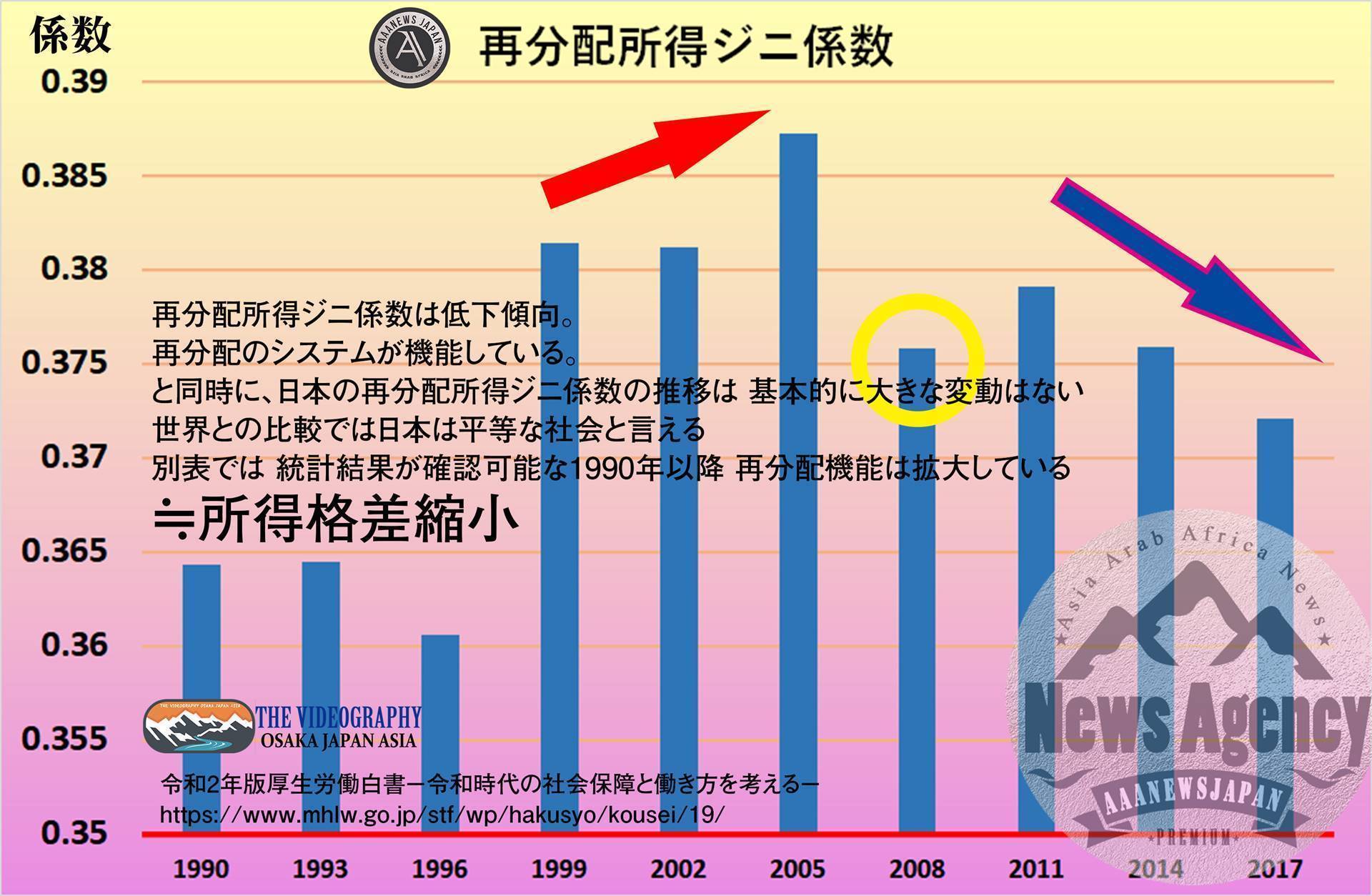 - と同時に、日本の再分配所得ジニ係数の推移は 基本的に大きな変動はない