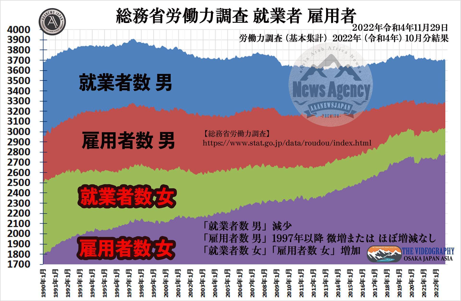 総務省労働力調査 就業者数 雇用者数・2022年(令和4年)10月分結果